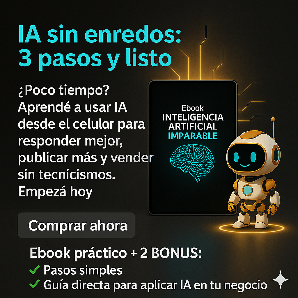 Además, recibís GRATIS: 50 prompts listos para usar con tu ebook Inteligencia Artificial Imparable.